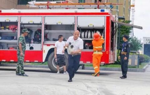 久安物业特别在现场进行了模拟演练:“居民”家中失火,物业工作人员在消控室看到火情后进行了一系列的处置,包括第一时间通知消防部门,同时通知物业负责人;现场的居民及时进行自救,终于逃出火场;火场则由专门培训的消防队扑灭。