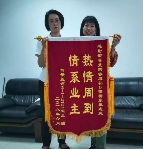 图为御景蓝湾物业服务中心收到业主送来的锦旗。